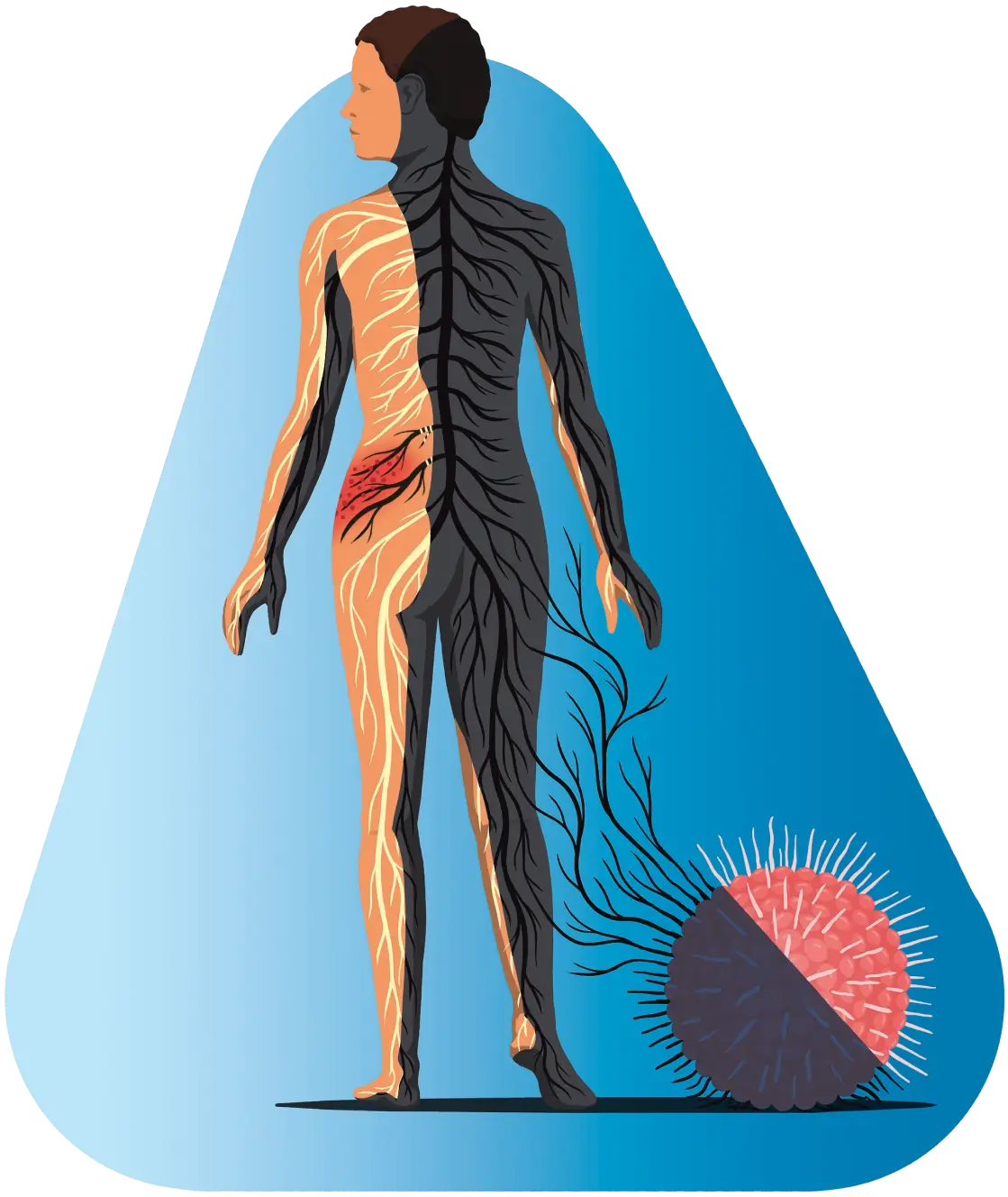 Damit zählt die Gürtelrose zu den häufigen Erkrankungen in Deutschland. Und sie ist wohl eine der unterschätztesten. Denn Herpes Zoster ist keine harmlose Haut- sondern eine ernstzunehmende Nervenerkrankung. Dies zeigt sich im Krankheitsverlauf: Das Virus bahnt sich seinen Weg entlang der Nervenfasern zur Haut und verursacht dort die charakteristischen roten, brennenden Pusteln. Weil diese in den meisten Fällen im Bereich rund um den Gürtel auftreten, wird Herpes Zoster im Volksmund Gürtelrose genannt. Doch schlimmer als der Ausschlag sind die oft quälenden Nervenschmerzen, die mit einer Krankheit einhergehen. Sie halten oft über mehrere Wochen an, in einigen Fällen sogar über Monate oder gar Jahre.
